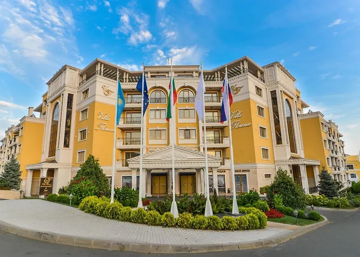 Offrant un restaurant, VILLA FLORENCE Boutique Apart Hotel Sveti Vlas se trouve dans le quartier historique de "Yurta" à Sveti Vlas, à moins de 3 km de la Plage de Dune et à 6 km de la Église Saint-Jean-Aliturgetos. Situé à environ 15 minutes en voiture de la Église Sainte-Sophie, l'hotel sans fumée dispose de 49 chambres avec vue sur les montagnes.